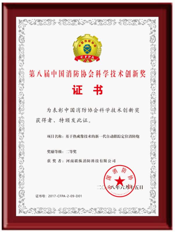河南聯縱消防科技有限公司位于鄭州市高新區電子電器產業園,擁有專家團隊和標準化工業廠房和實驗場,是一家以大空間智能消防水炮為主導的集科研、開發、生產、銷售、服務于一體的高科技消防設備制造企業。 公司以“極致產品安天下”為宗旨,針對市場上普通消防水炮精準度差、易誤噴、不能實時追蹤動態火源、適用場所受限等缺陷,歷時6年,成功研發出了第II代自動跟蹤定位射流滅火裝置系列產品。公司已通過了IS09001:208、IS014001:2004、OHSAS18001:2007、GB/T29490-2013等體系認證,獲得專利授權三十多項,取得國家級高新技術企業、消防行業誠信示范單位、消防科技創新企業、第八屆中國消防協會科學技術創新獎,產品通過國家消防裝備質量監督檢驗中心檢驗,并獲得了公安部消防產品合格評定中心頒發的消防產品認證證書。 第II代自動跟蹤定位射流滅火裝置采用熱成像+捷聯制導技術,集自動報警、動火追蹤、自動滅火、視頻監控四位一體,具有可靠性高、精準度好、性能穩定、安裝操作方便、智能化程度高、應用環境廣泛等特點。公司產品自上市以來,已經有數萬臺產品被安裝在了數千個工程項目中,先后參加了幾十次國內外消防展,贏得了各界人士的一直好評,被央視《我愛發明》欄目發現后,央視編導組對產品性能進行了數十天的實驗和拍攝,先后在以下節目播出: CCTV-10《我愛發明》之“烈火哨兵”、CCTV-10《實驗現場》之“滅火試驗”、CCTV發現之旅《品質》之“智慧消防 守護一生”、 CCTV-17新改版《我愛發明》之“智能水炮”...